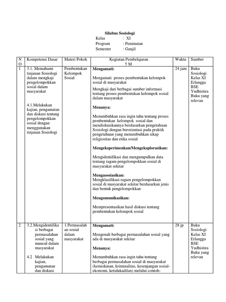 DOC) SILABUS SOSIOLOGI KELAS XI | anfridus saleman - Academia.edu