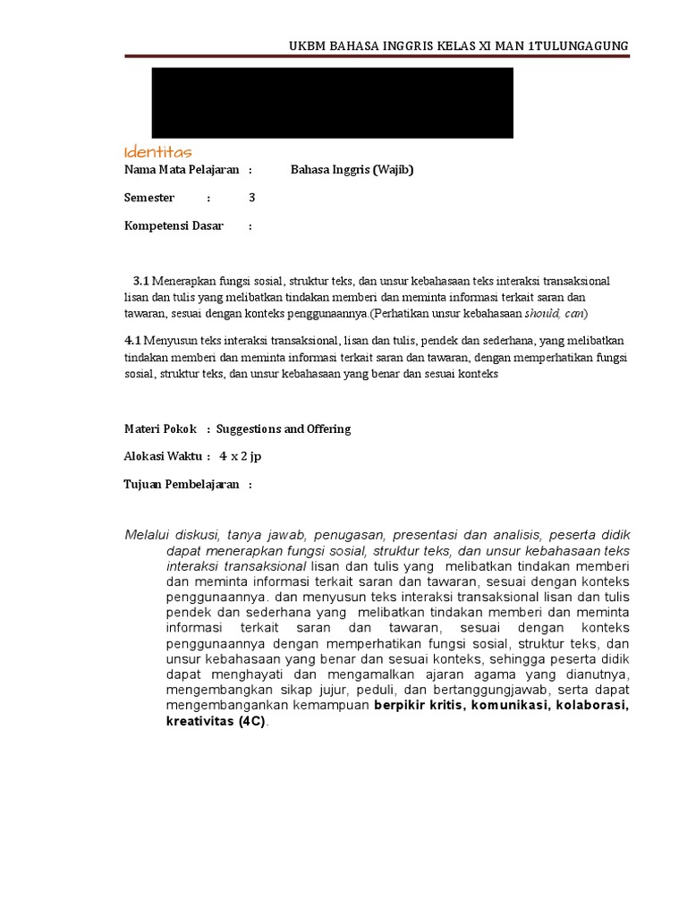 DOC) RPP Bahasa Inggris Kelas XI K.13 Suggest and Offer | Rifda Eldi Maritsa - Academia.edu