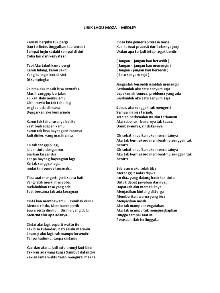 lirik lagu moza – medley