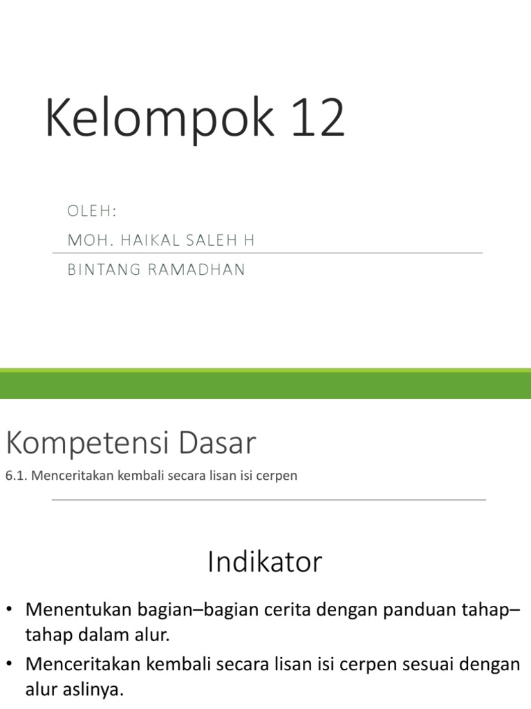 Menceritakan kembali secara lisan isi cerpen PPT
