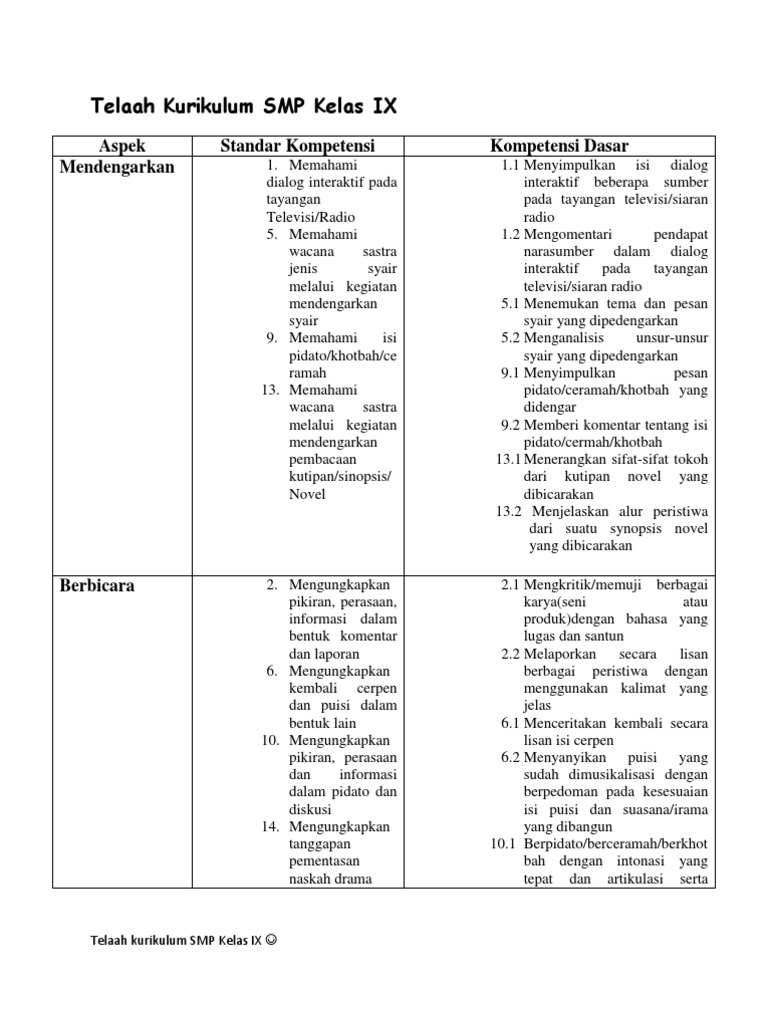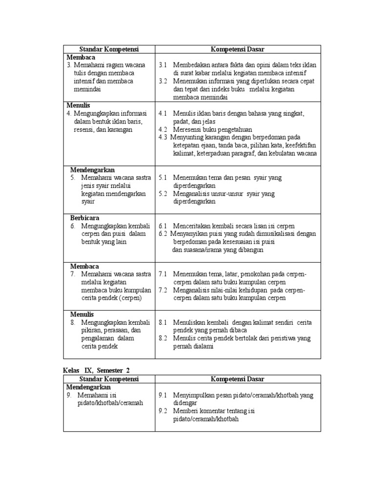 DOC) DELAPAN KOMPETENSI BERBAHASA INDONESIA UNTUK KELAS 9 SEMESTER 1 | DINDUNG SUKIRTAM - Academia.edu