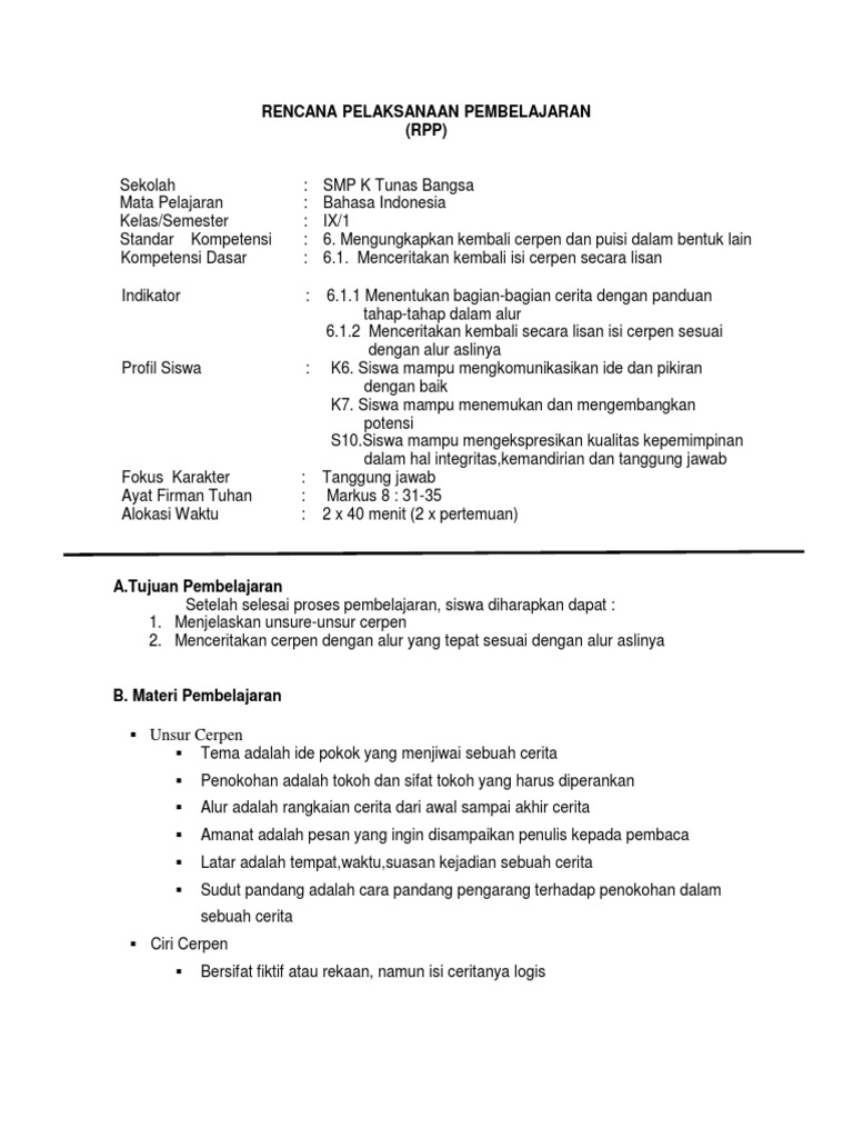 Contoh RPP Teks Cerita Pendek SMP Kelas