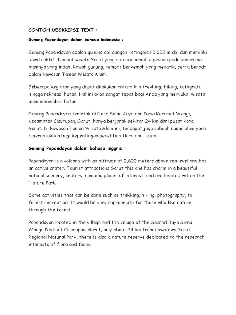 Contoh Teks Deskripsi Dalam Bahasa Inggris Tentang Tempat Wisata - Berbagai Teks Penting
