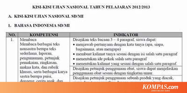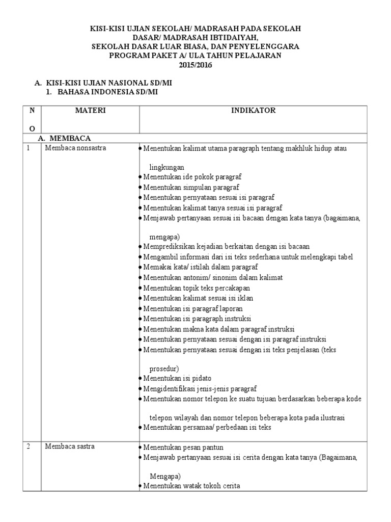 A. KISI-KISI UJIAN UJIAN SEKOLAH SD/MI 1. BAHASA .pengumuman …