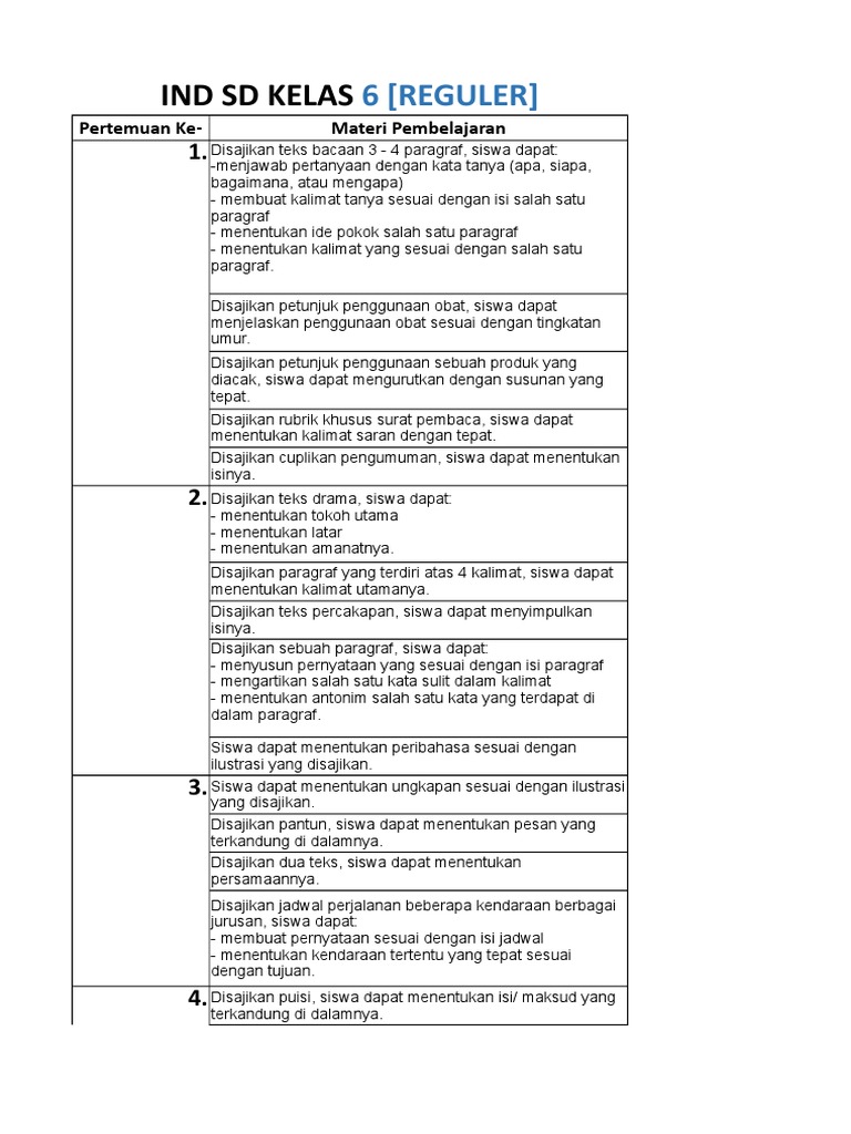 Ind Sd Kelas: 6 [Reguler]