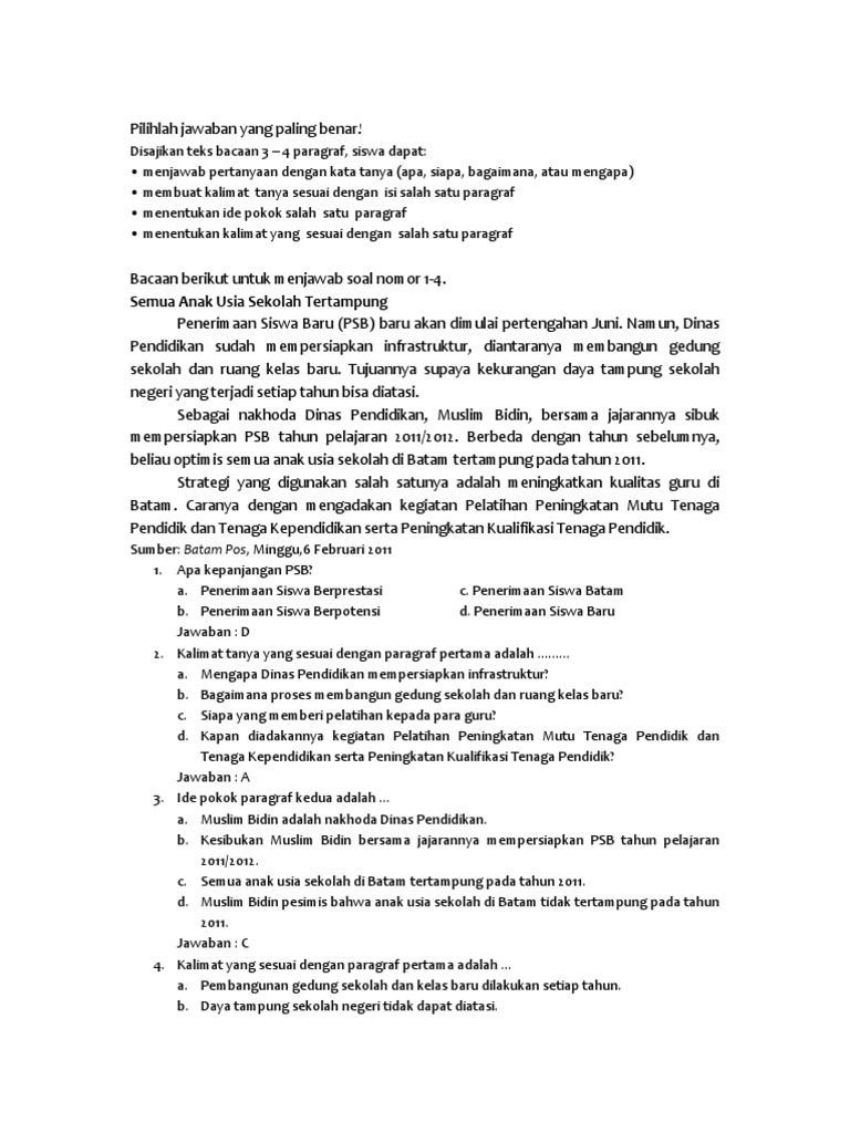 Kisi Kisi Ujian Kalimat Tanya Yang Sesuai Dengan Isi Paragraf …