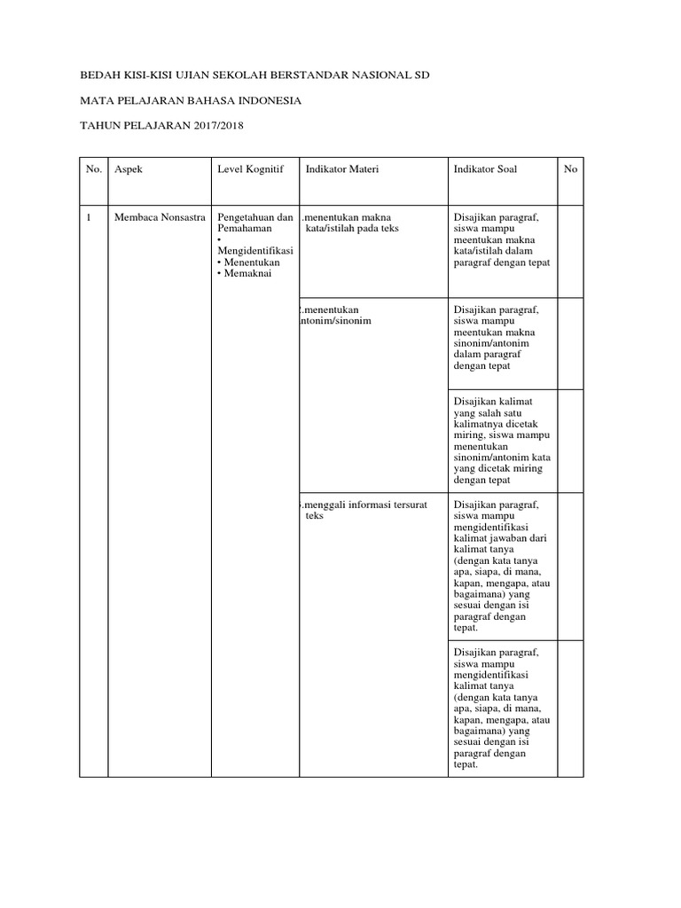 Bedah Kisi-kisi Usbn 2018 Bindo