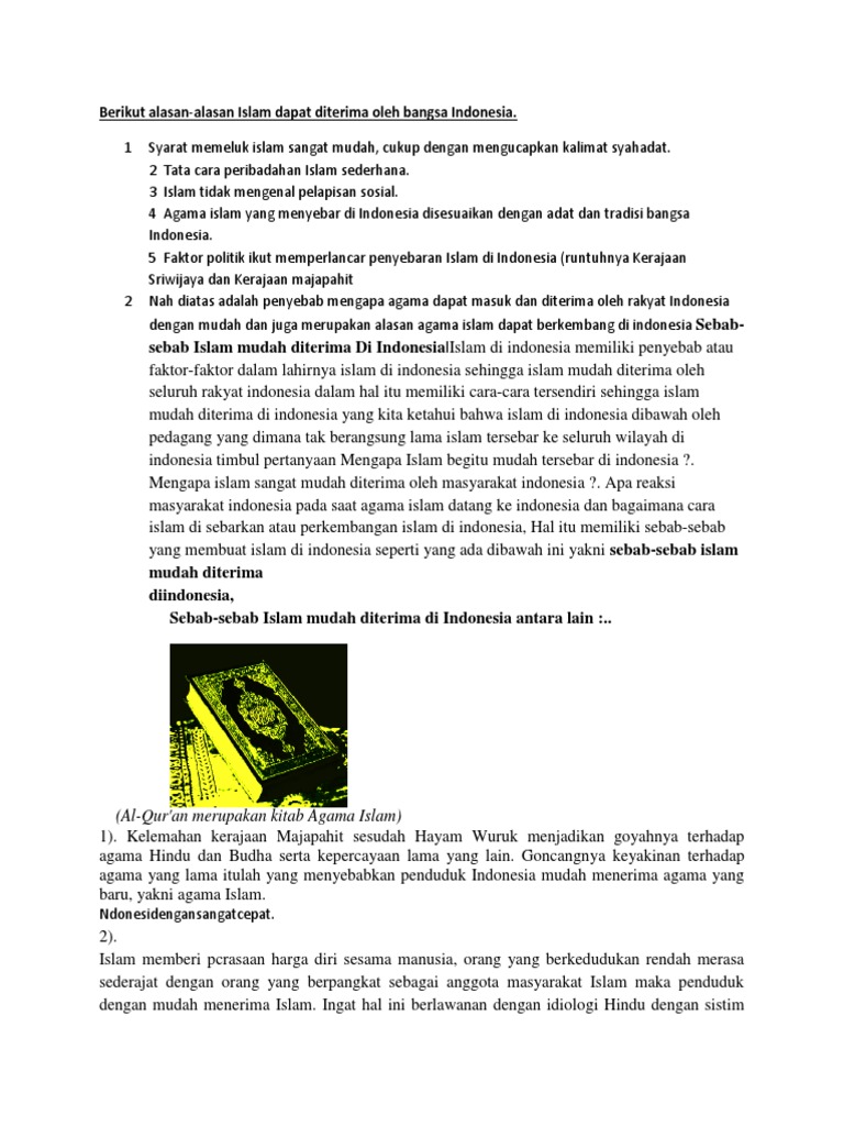 jelaskan mengapa agama islam mudah diterima penduduk indonesia …