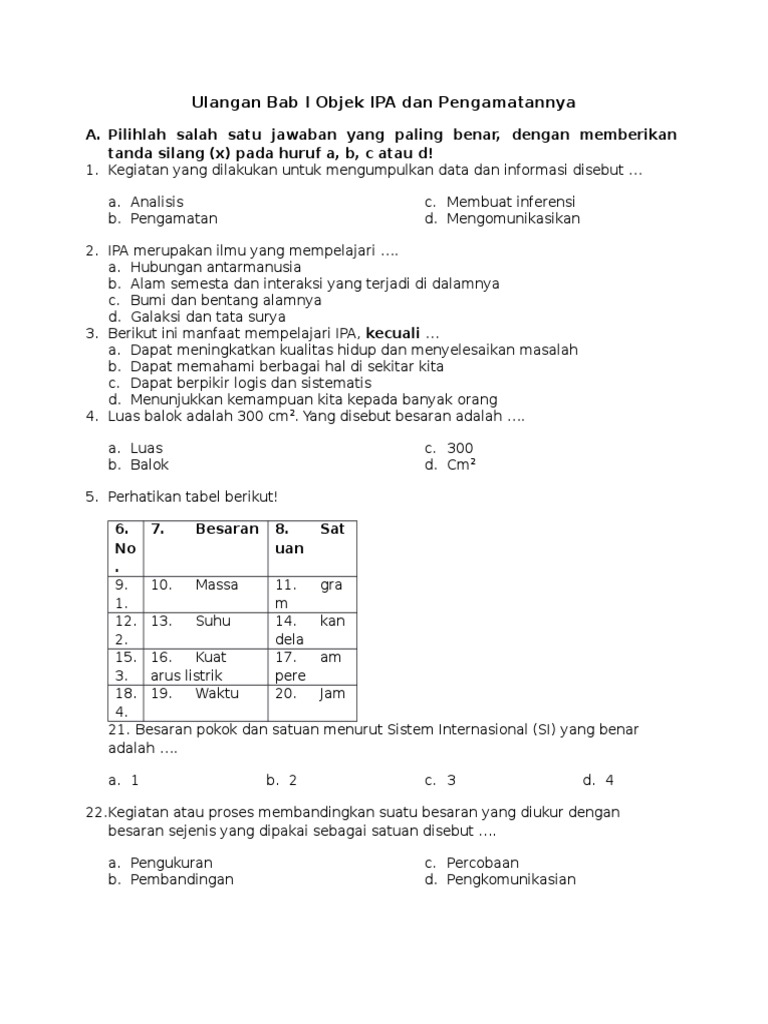 PDF) Latihan Soal Ilmu Pengetahuan Alam (IPA) Topik : Objek IPA dan Pengamatannya | reza perpusda - Academia.edu