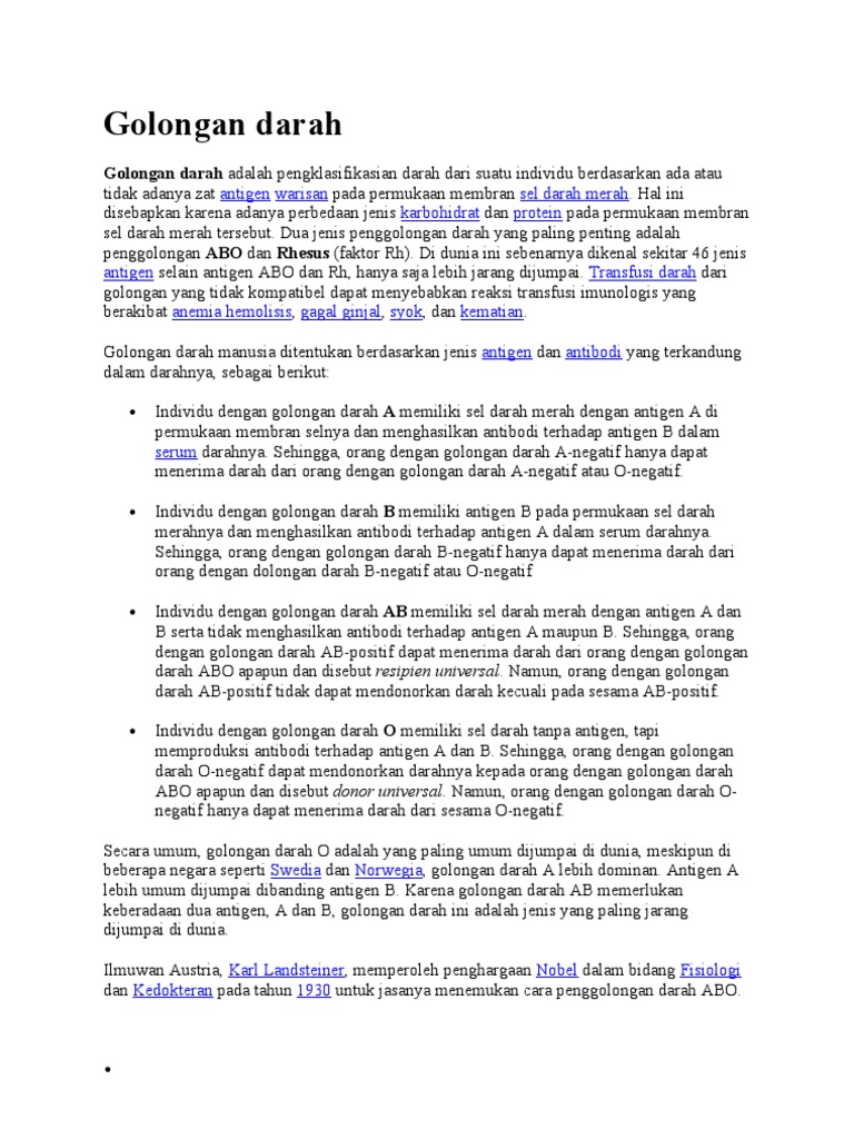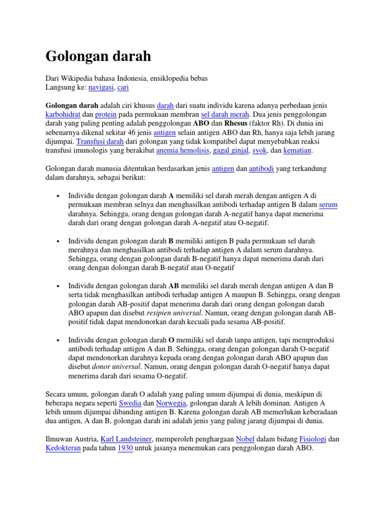 mengapa golongan darah AB disebut sebagai resipien universal dan golongan darah O disebut sebagai - Brainly.co.id