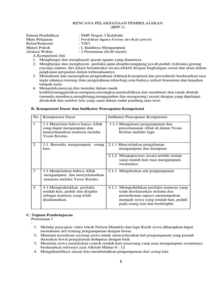Kelas 07 SMP Pendidikan Agama Kristen Dan Budi Pekerti Siswa
