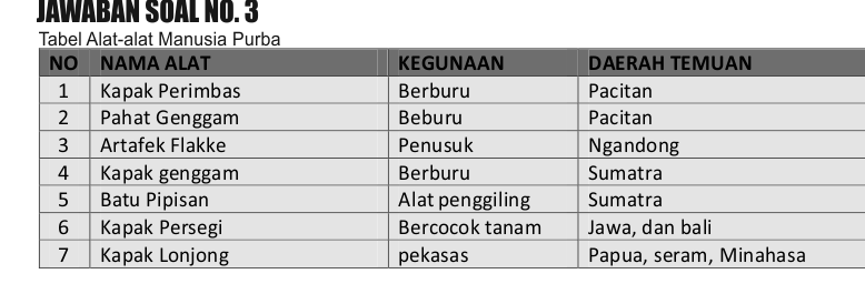 1. mengapa manusia purba membuat peralatan dari bebatuan, kayu dan …