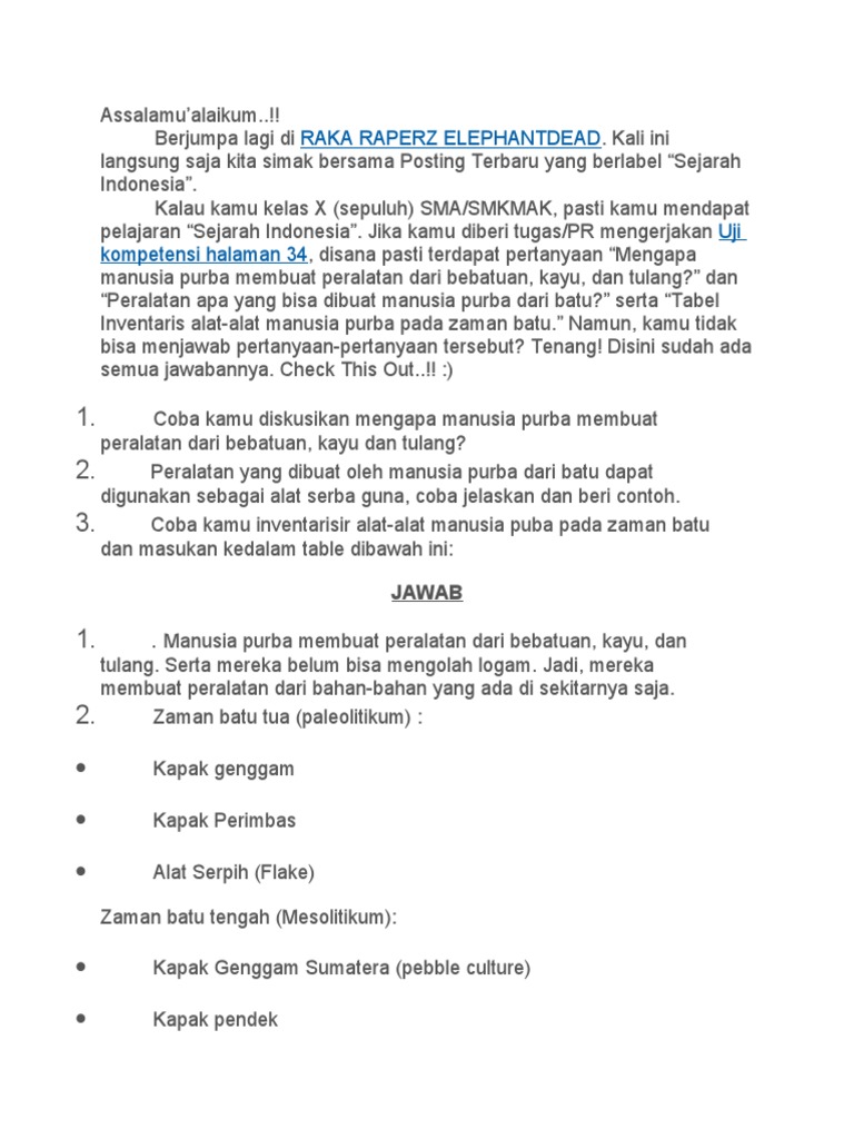 coba kamu invertarisir alat alat manusia purba pada zaman batu dan …