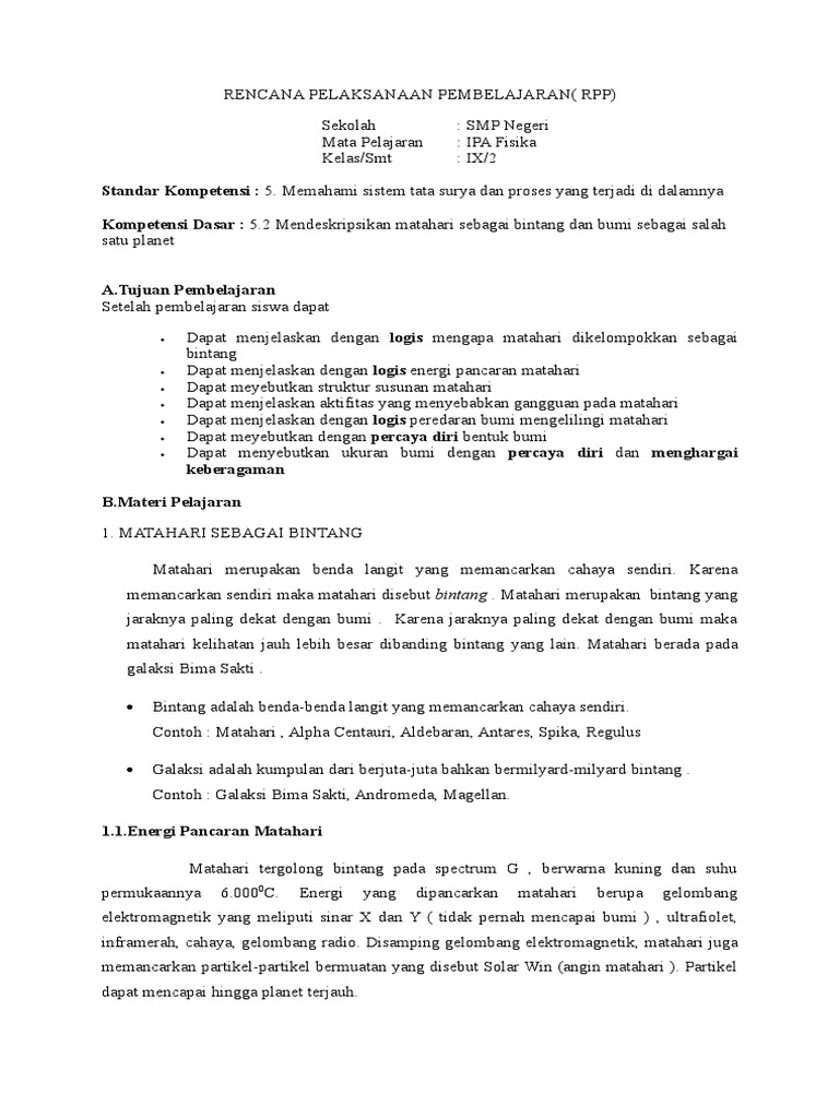 5.2 Matahari sebagai Bintang dan Bumi sebagai Salah Satu Planet …