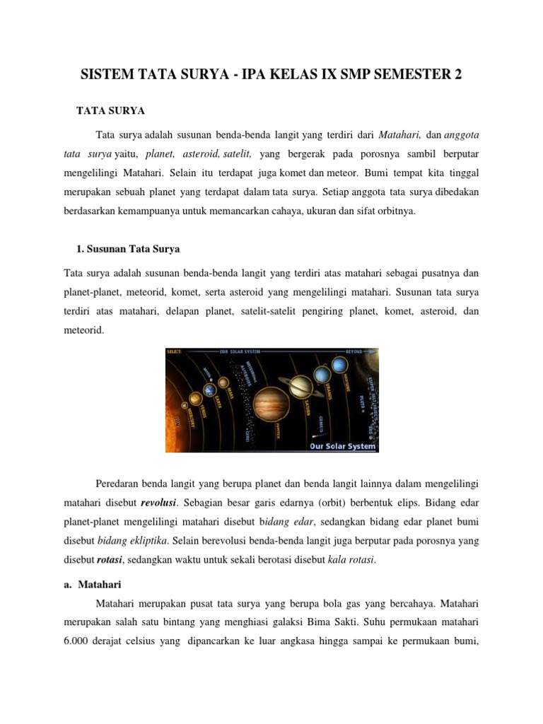 SISTEM TATA SURYA - IPA KELAS IX SMP SEMESTER 2 | JDSK