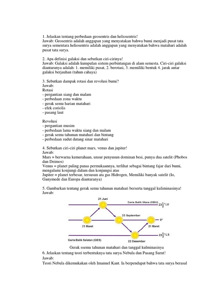 Matahari sebagai pusat tata Surya dan akibat rotasi dan revolusi …