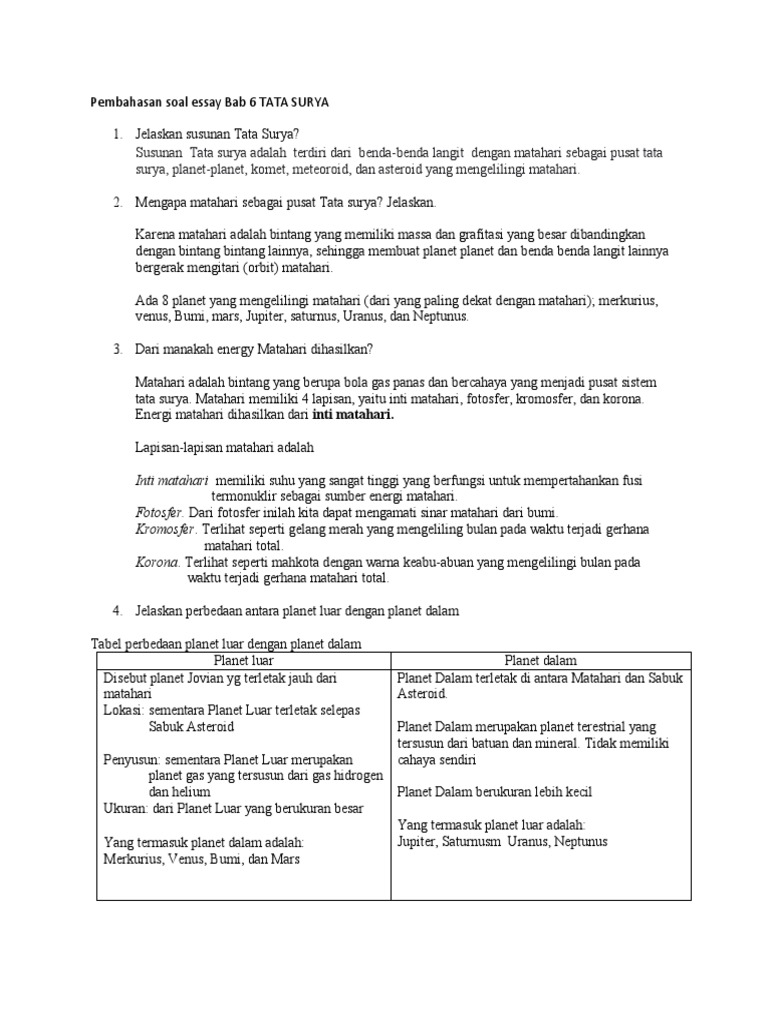 Pembahasan essay Bab 6 TATA SURYA buku BSE IPA kelas 7