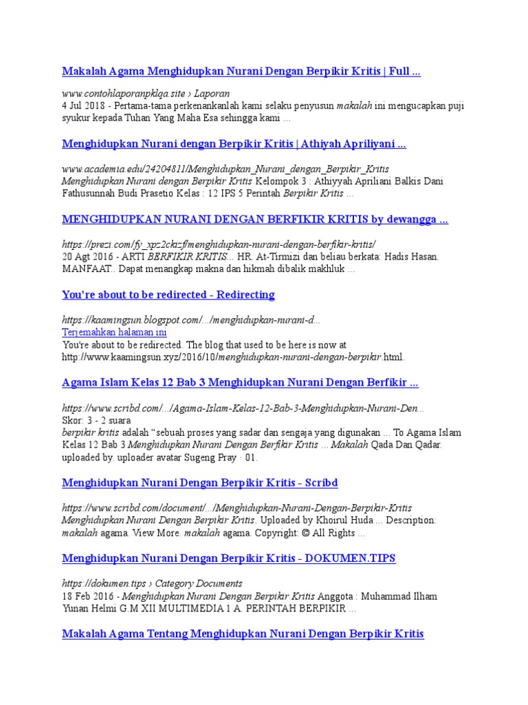 Makalah Agama Menghidupkan Nurani Dengan Berpikir Kritis