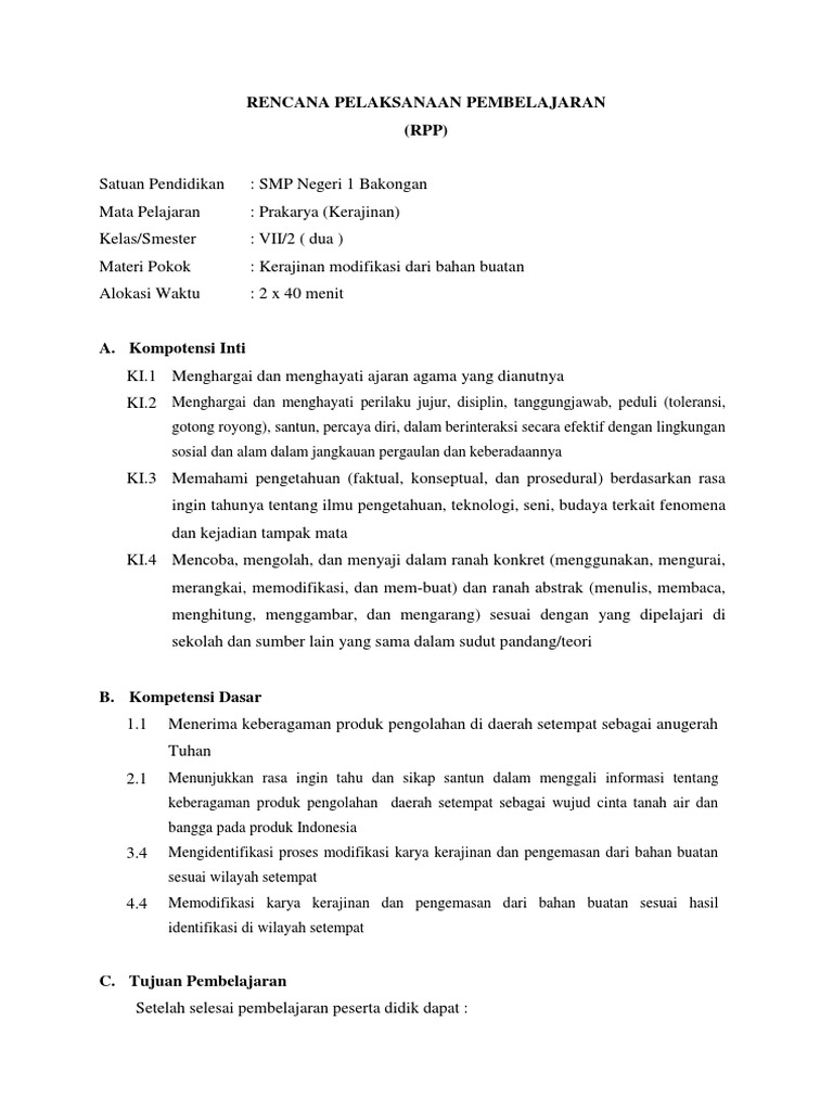DOC) Rpp-prakarya-kerajinan | ade supriatna - Academia.edu