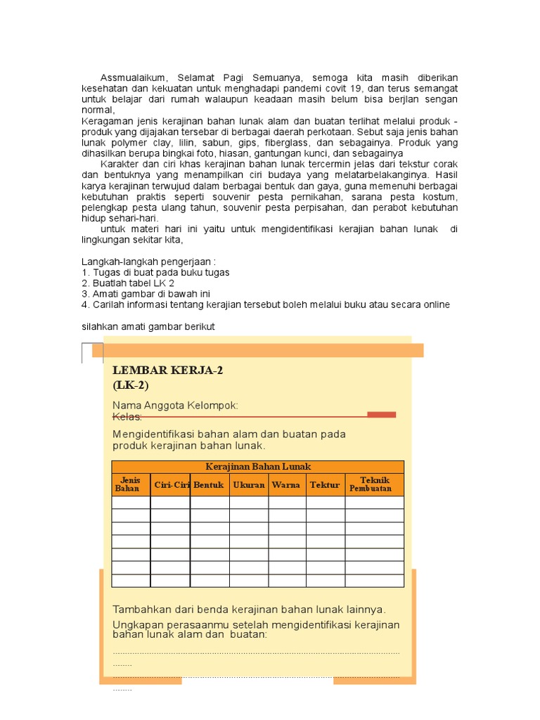 Sebutkan Mengidentifikasi Karya Kerajinan Dari Bahan Lunak …