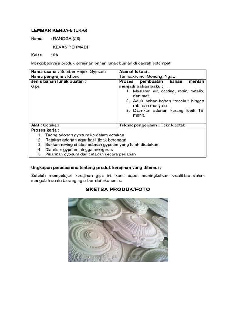 Lembar Kerja 1 Mengidentifikasi Produk Kerajinan Dari Bahan Keras …