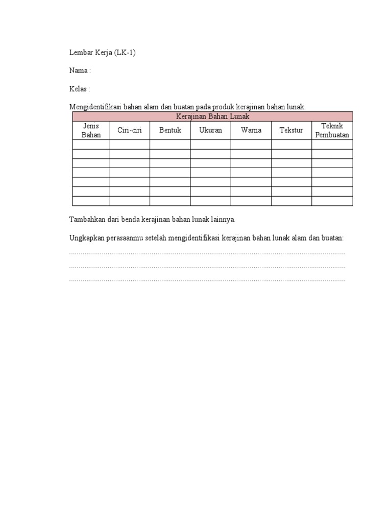 Rpp prakarya kerajinan lunak - [DOCX Document]