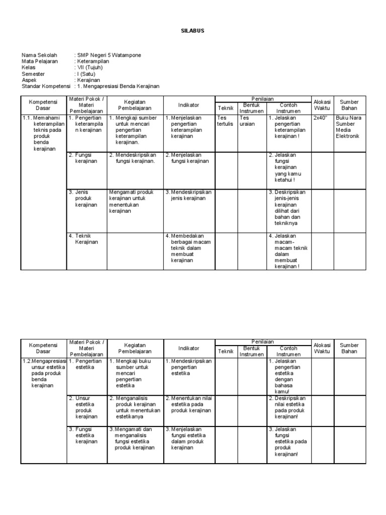 silabus prakarya kerajinan kls 7