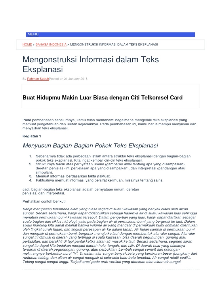 Mengonstruksi Informasi dalam Teks Eksplanasi: Buat Hidupmu …