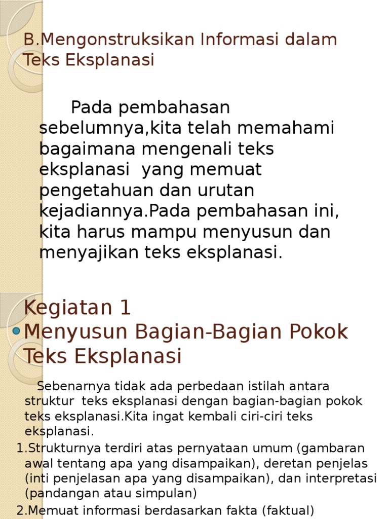 Mengonstruksi Informasi dalam Teks Eksplanasi ; materi Bahasa …