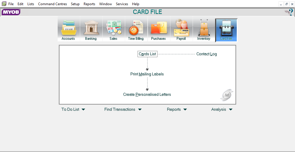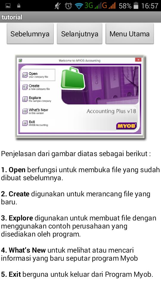 menu-menu yang ada pada tampilan awal MYOB | Mind Your Own Bussiness