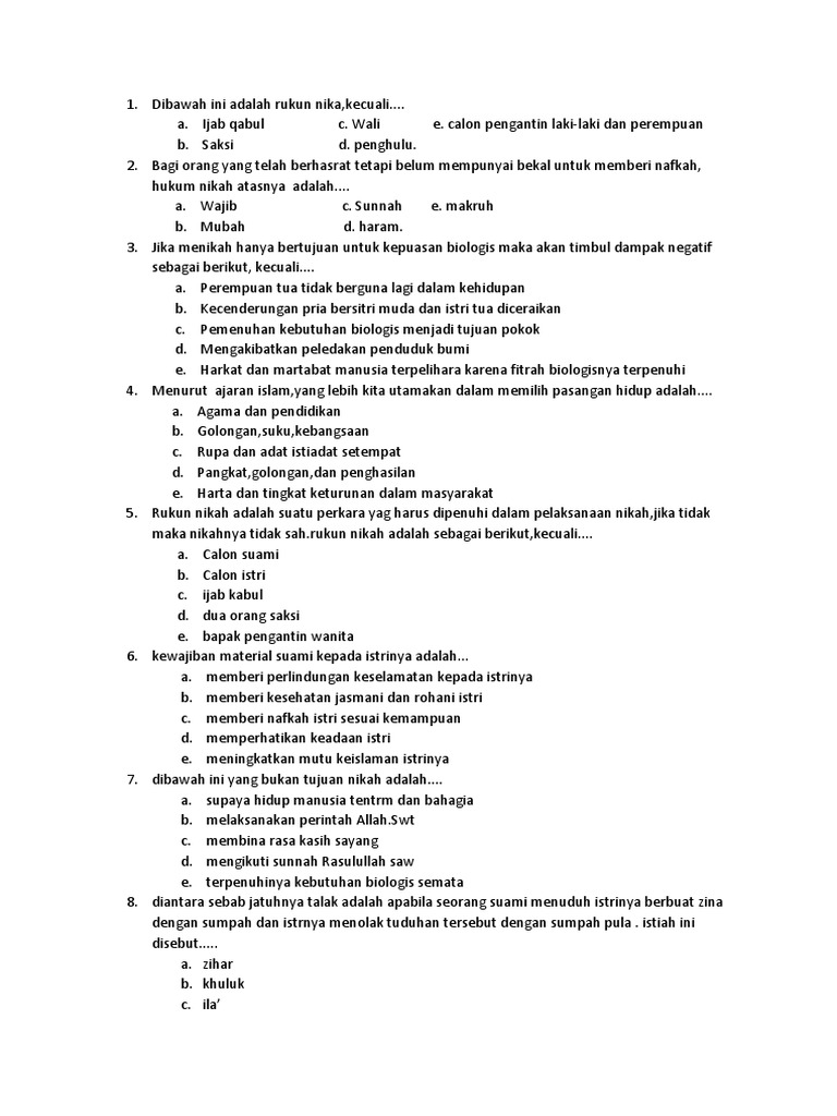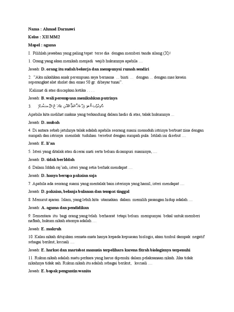 Soal Latihan Pendidikan Agama Islam Tentang Pernikahan Kelas XII …