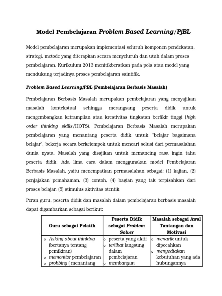 Contoh Penerapan Model Pembelajaran Problem Based Learning pada Pembelajaran - passakanawang