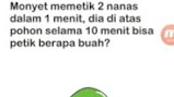 Monyet memetik 2 nanas dalam 1 menit, dia diatas pohon selama 10 …
