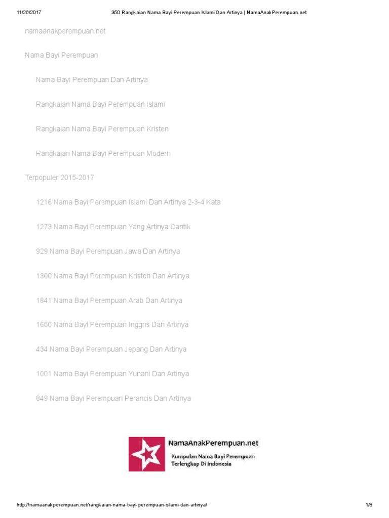 Nama Anak Perempuan Islam Dan Artinya 2017