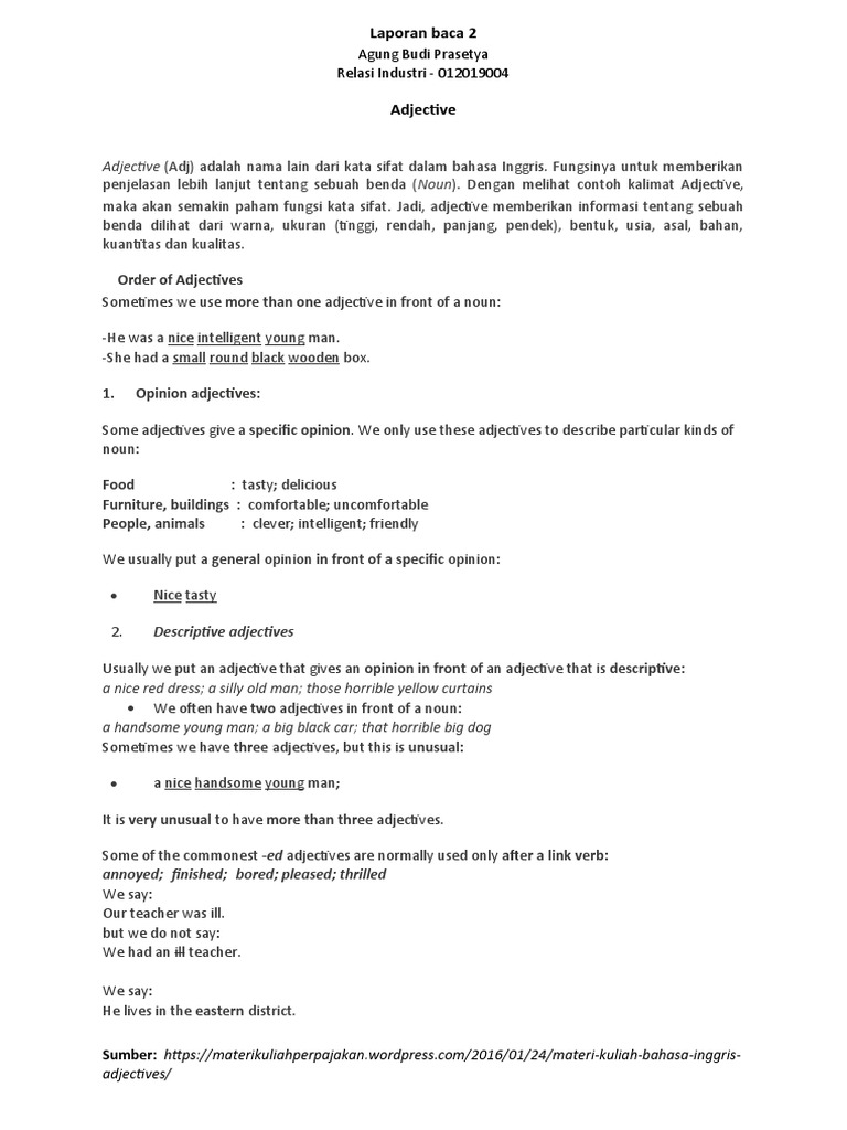 Jenis Kata Sifat Dalam Bahasa Inggris ya