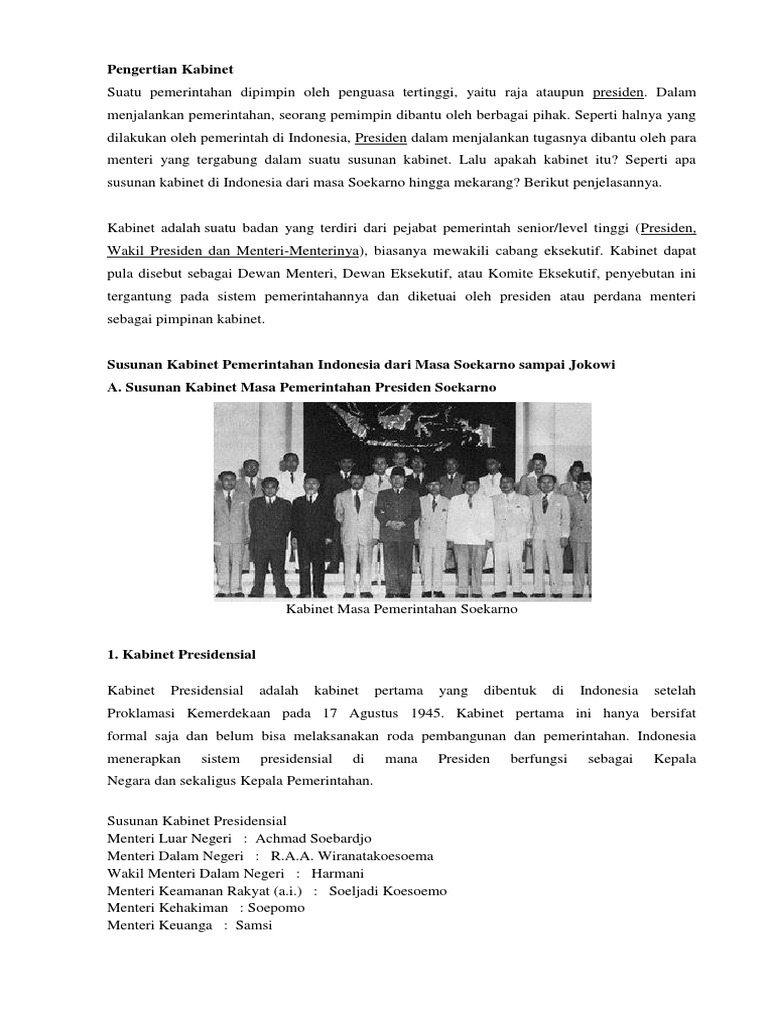 Kabinet Presiden Soekarno Sampai Jokowi
