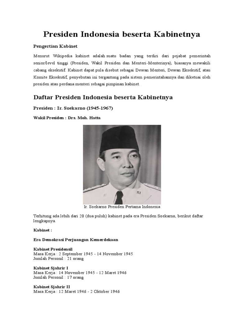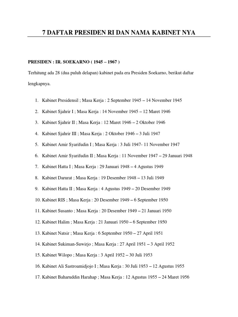 7 Daftar Presiden Ri Dan Nama Kabinet Nya