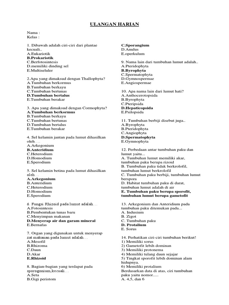 50 Soal IPA Tumbuhan LUMUT dan PAKU & Jawabannya Lengkap - Muttaqin id