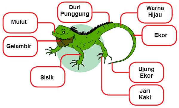 amati gambar iguana lalu, tuliskan nama nama bagian tubuh iguana …