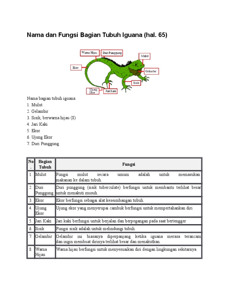 sebutkan 8 anggota tubuh iguana beserta fungsinya - Brainly.co.id
