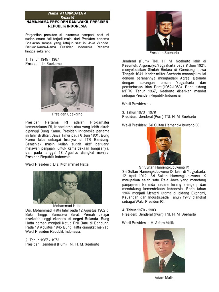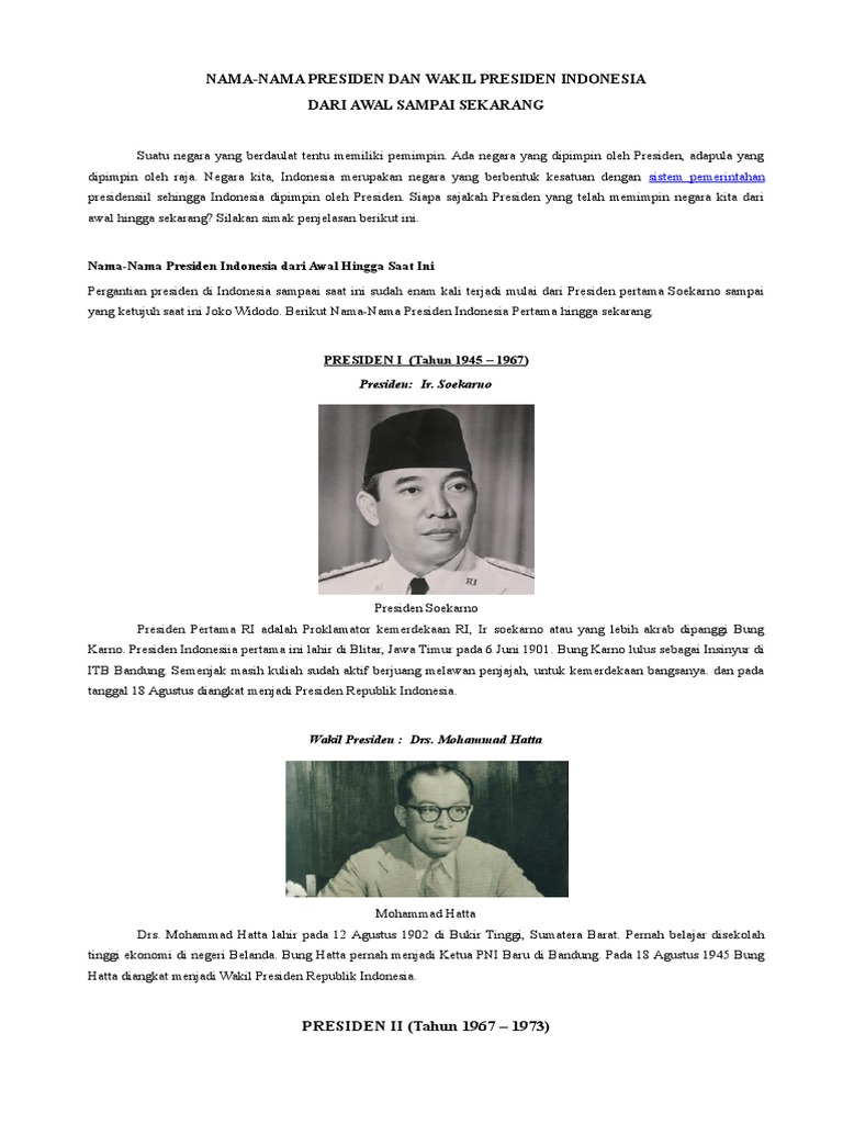 PDF) Daftar Urutan Nama Nama Presiden Dan Wakil Presiden Di indonesia | dhoni trianto - Academia.edu