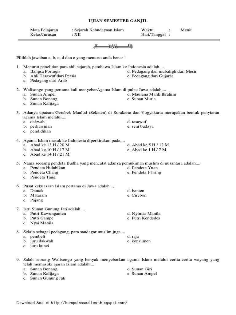 Soal Ulangan SKI Kelas XII MA Tentang … - Info Dan Berita Harian Kita
