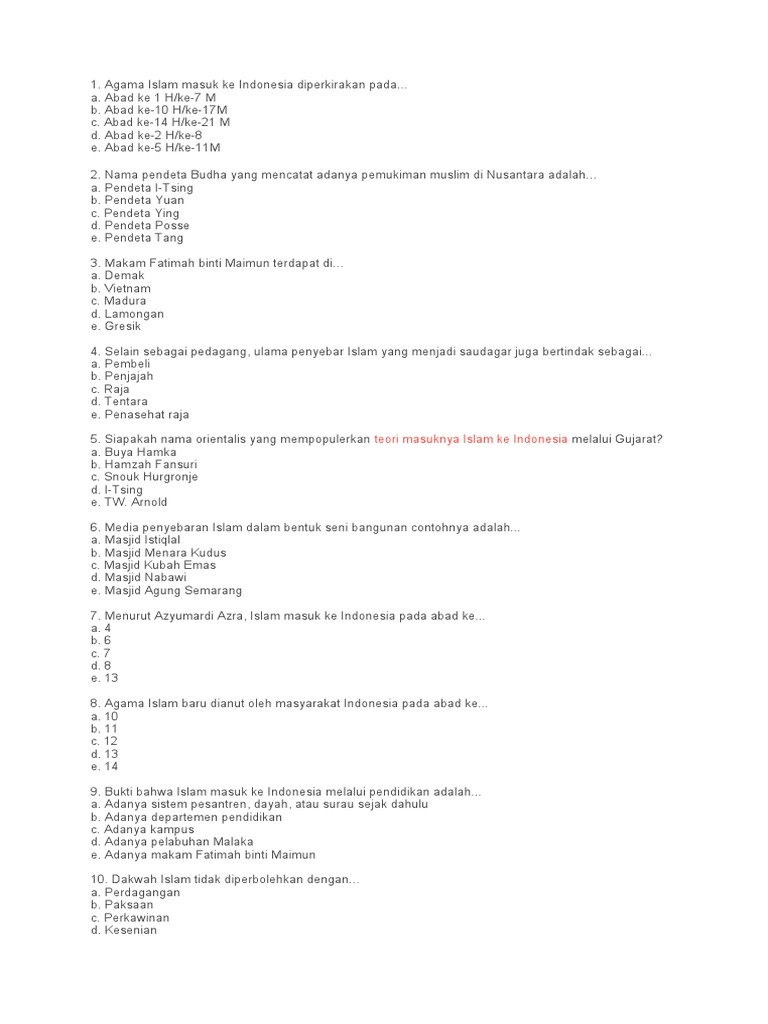 Contoh Soal tentang Masuknya Islam ke Indonesia (Pilihan Ganda …