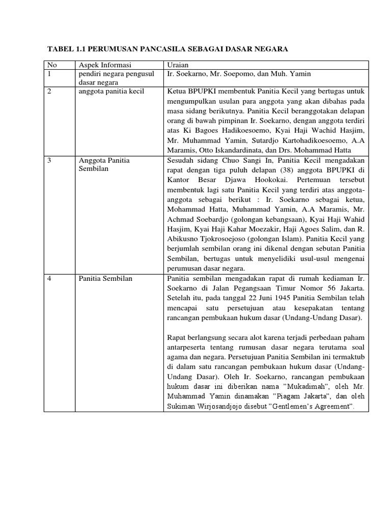 Tabel 1.1 Perumusan Pancasila sebagai Dasar Negara No … Tabel …