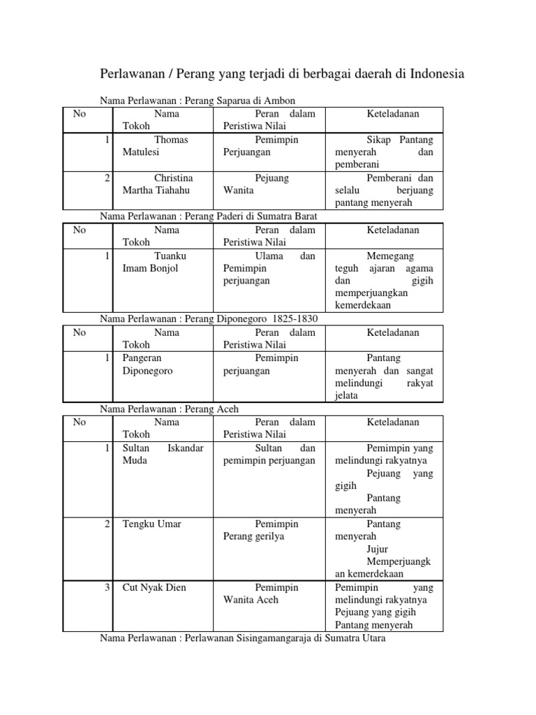 Nama tokoh,peran dalam peristiwa,nilai keteladanan - Brainly.co.id