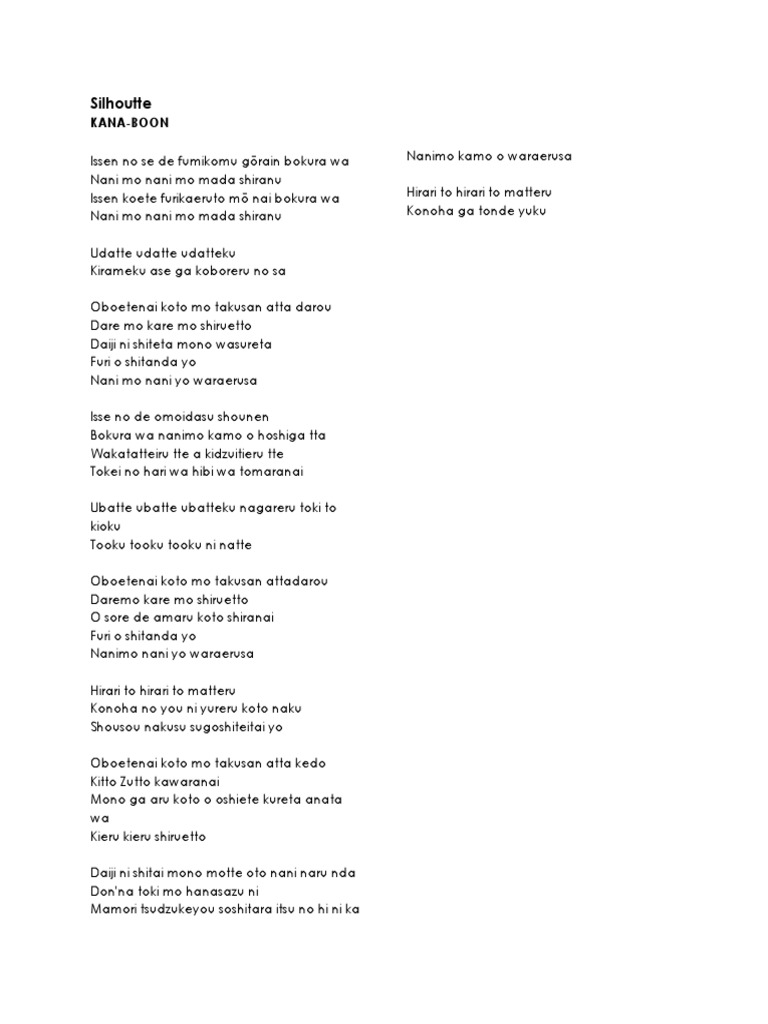 Naruto Opening/Ending Songs Lyrics - “Silhouette” by KANA-BOON (Naruto Shippuden Opening 16) - Wattpad