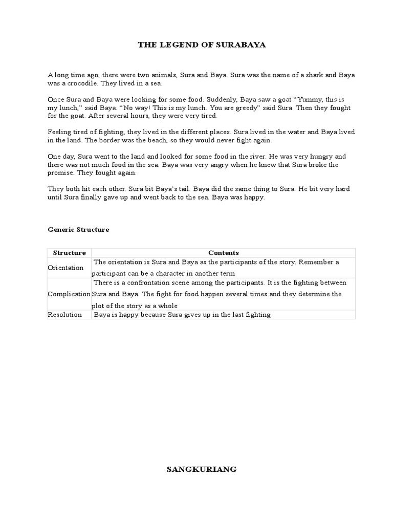 Example of Narrative Text+ Generic Structure: Legend of Surabaya