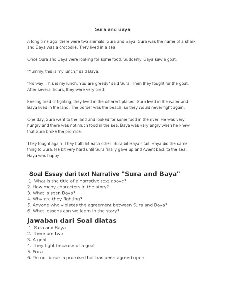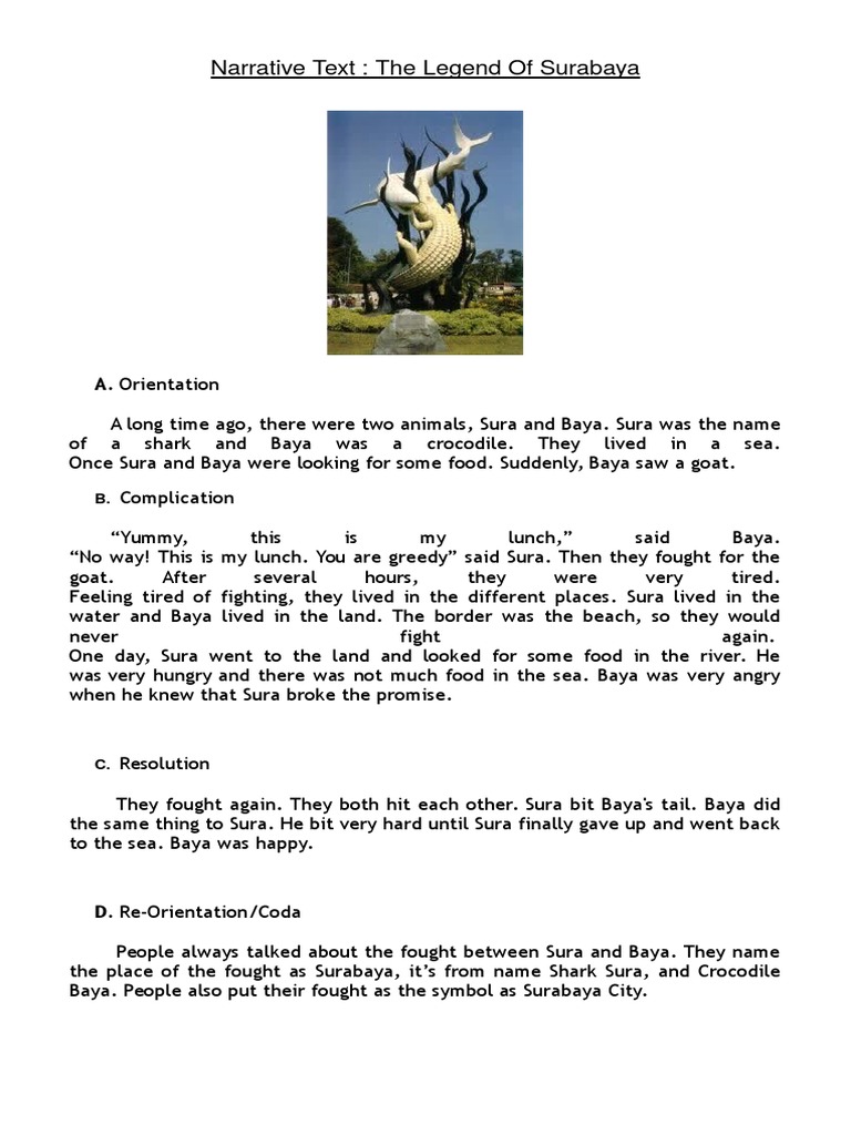 Contoh Narrative Text Legenda: Story of Sura and Baya | English Admin
