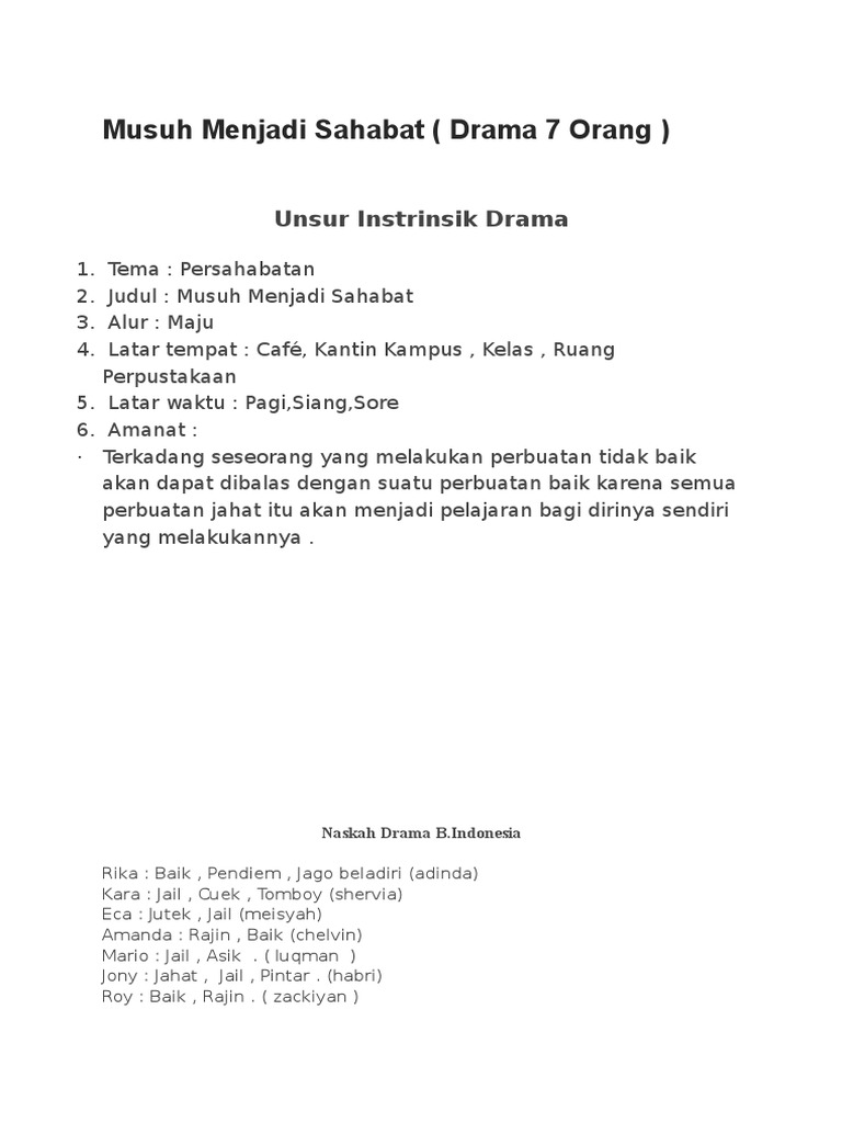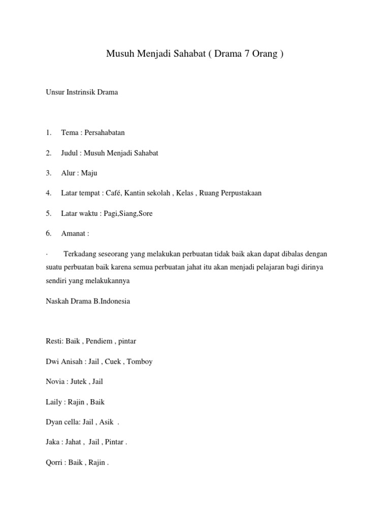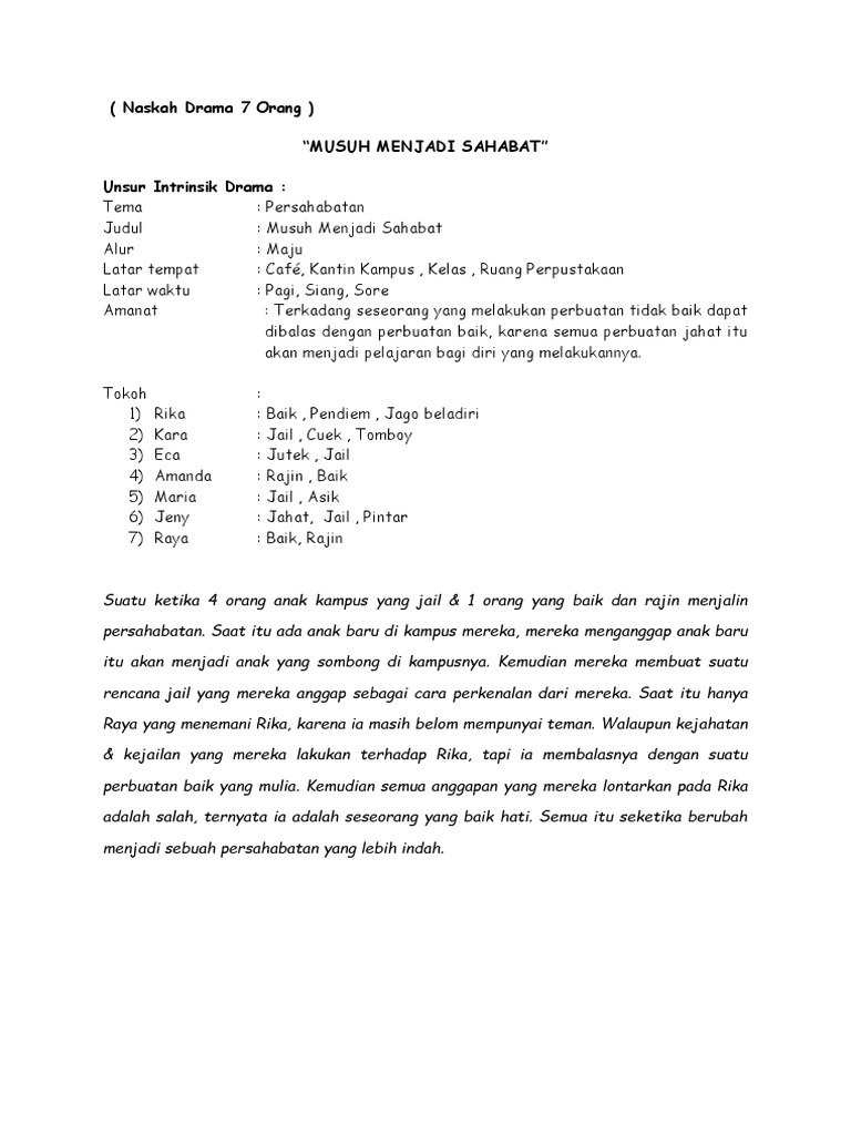DOC) ASKAH DRAMA 7 ORANG DENGAN TEMA PERSAHABATAN | Nadhira …