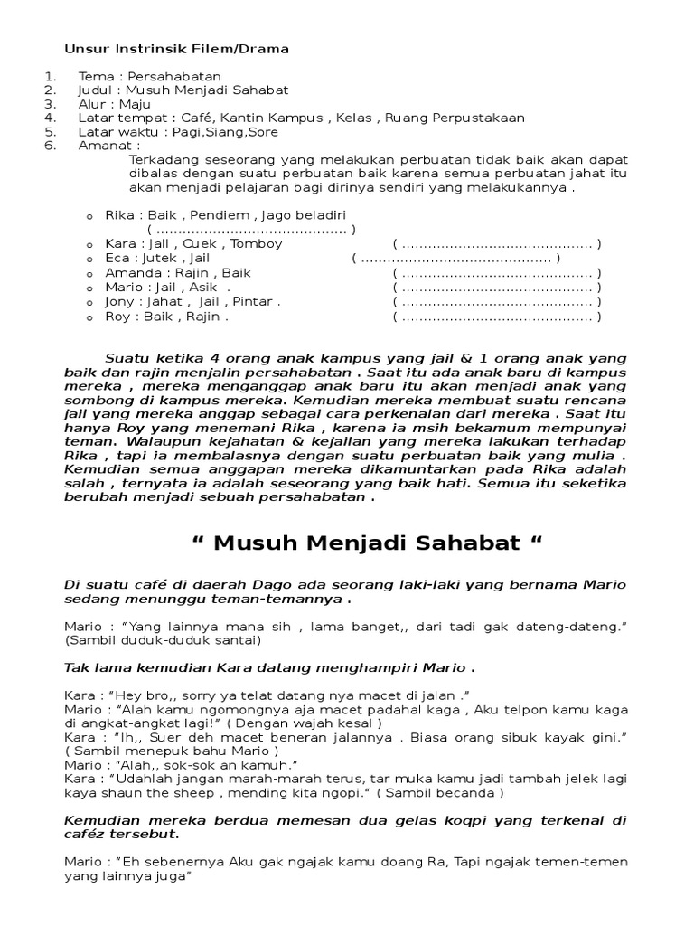 drama fix banget.doc - Tema Persahabatan Judul Musuh Menjadi …